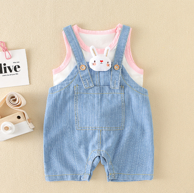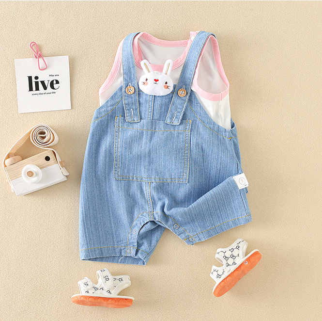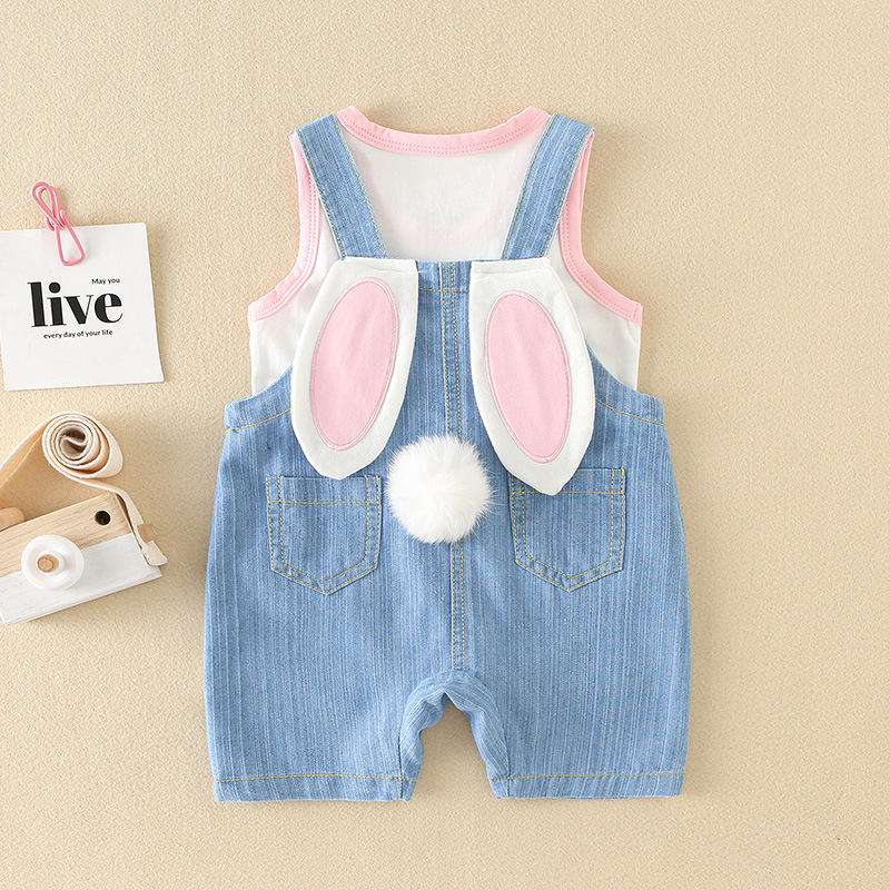 Set de 3 piese cu salopetă din denim și broșă Bunny Girl