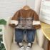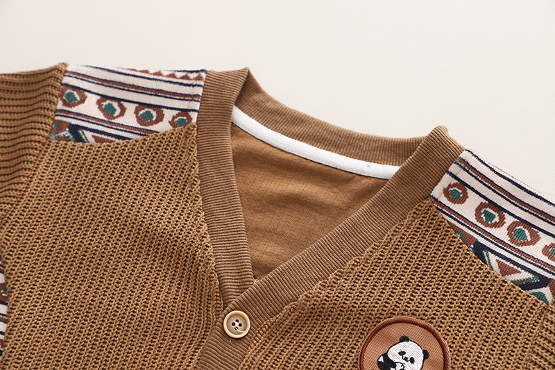 Set de 3 piese cu cardigan tricotat, bluză și blugi Coffee Panda