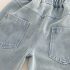 – Pantaloni din denim cu efect decolorat, confecționați din denim moale. Croiala este lejeră, pantalonii sunt ușor suflecați, iar designul îmbină un stil relaxat cu confort pentru jocuri zilnice.