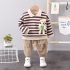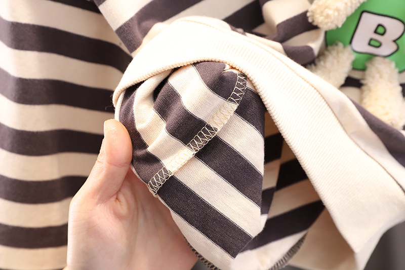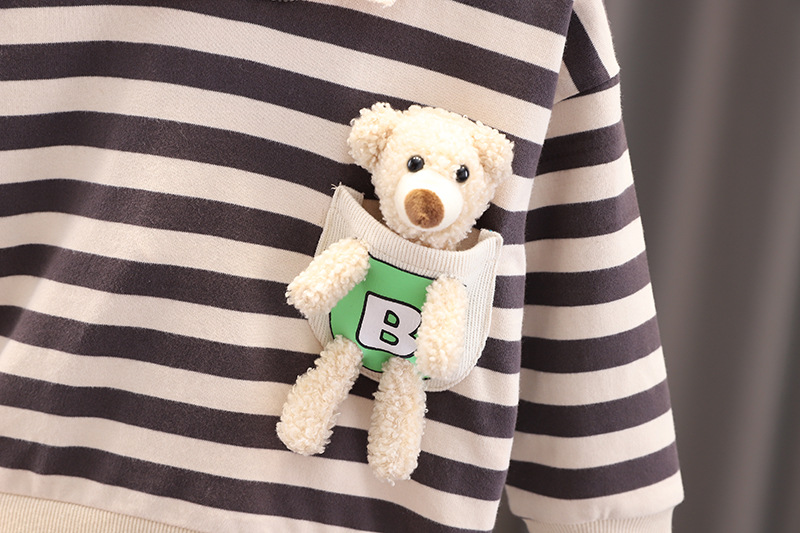 – Bluză în dungi maro și bej, din material moale de înaltă calitate. Model cu guler clasic și aplicație cu buzunărel din care răsare un ursuleț pufos – un detaliu amuzant ce va bucura orice copil. Mâneci cu manșete elastice pentru confort sporit.