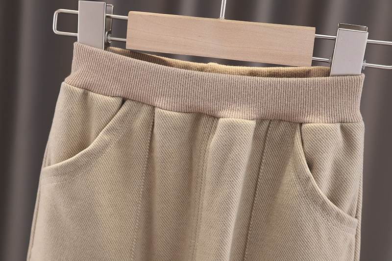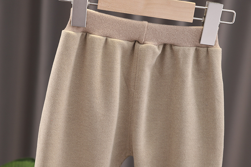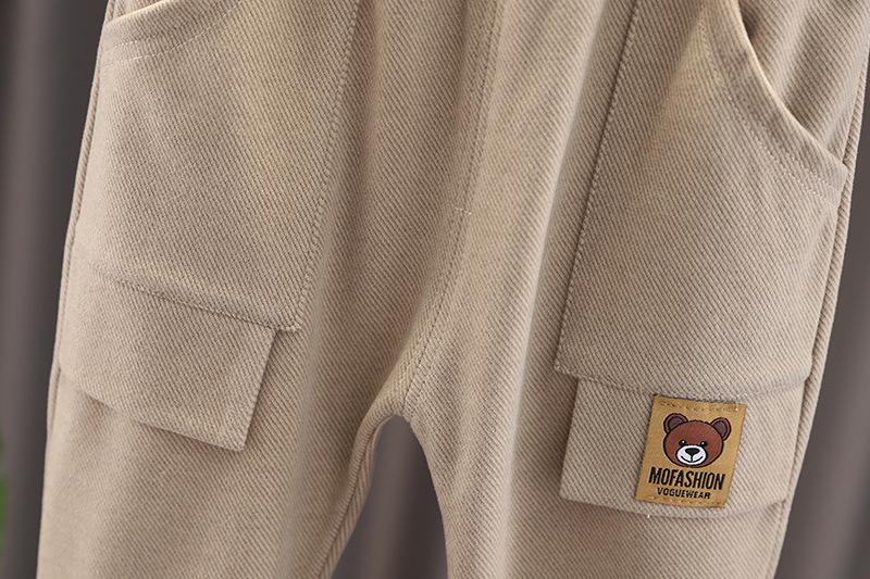 – Pantaloni comozi într-o nuanță caldă de bej, cu talie elastică și buzunare laterale cu clapete, ideali pentru joacă activă și plimbări.