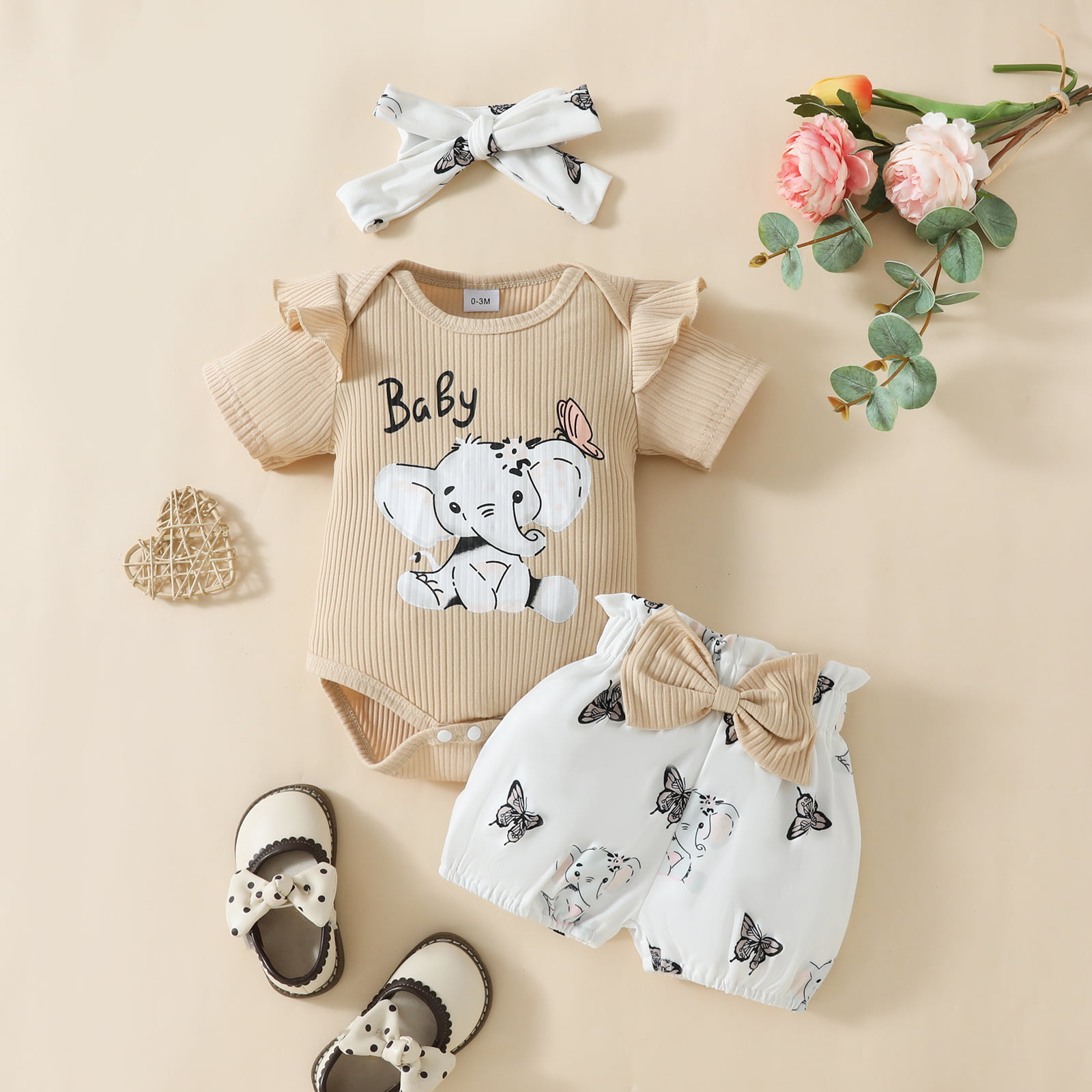 Set de 3 piese cu body, bucle și bentiță Mini Elephant Beige
