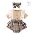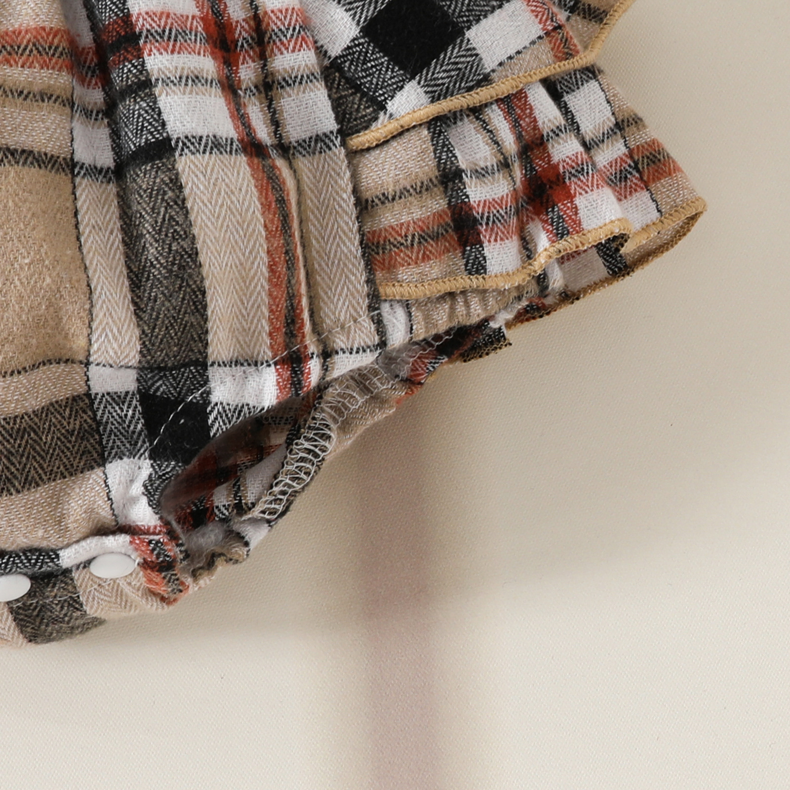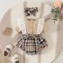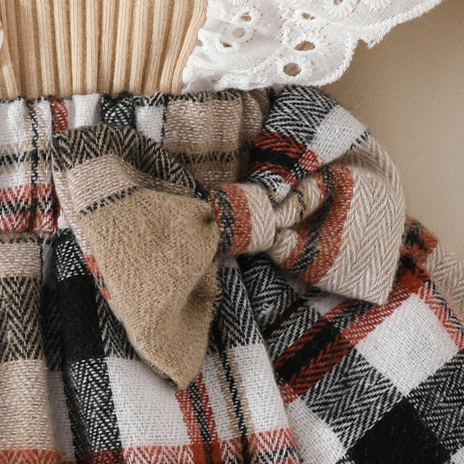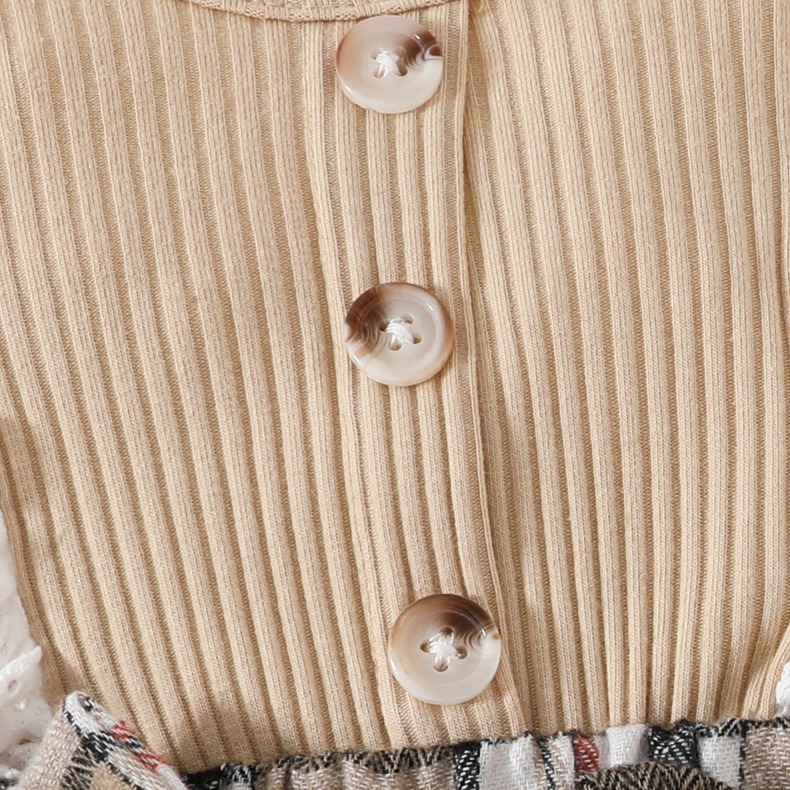 Set de 3 piese cu body rib cu volănașe din dantelă de bumbac, chiloței în carouri și bentiță pentru cap Oxford Lily Caramel