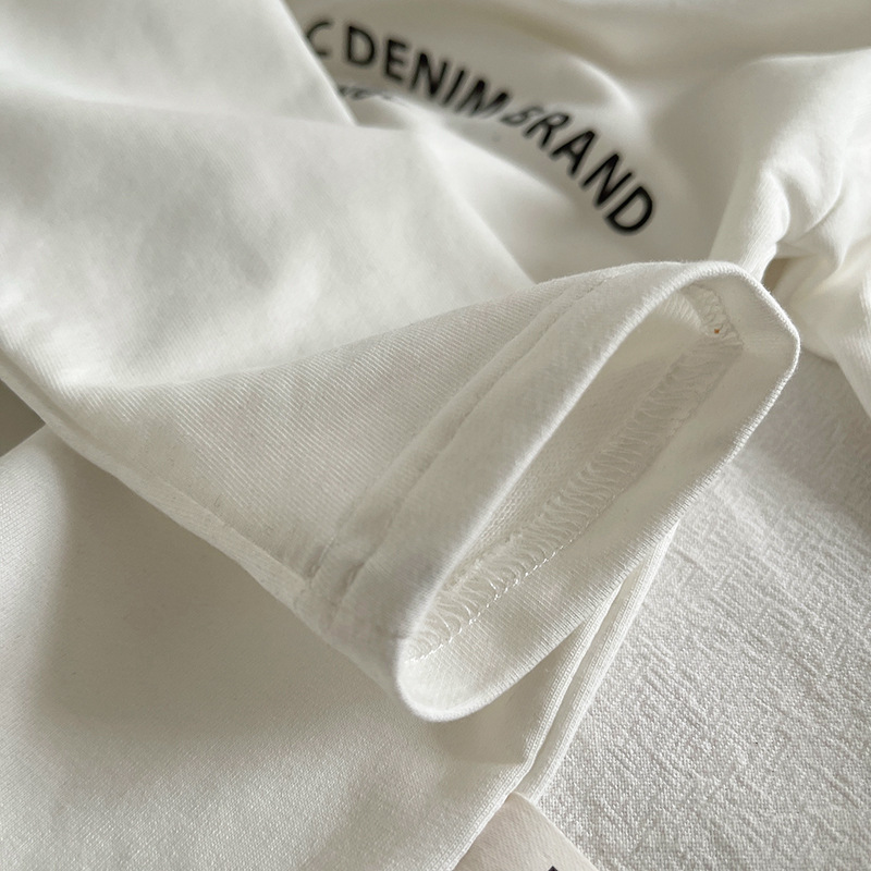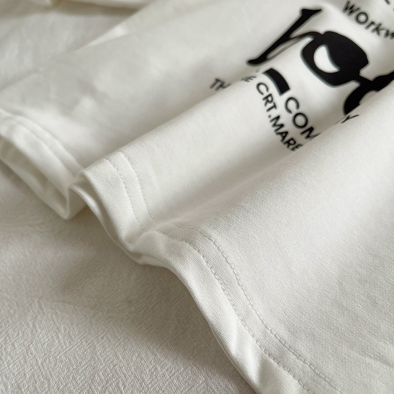 – Bluziță albă cu inscripții negre imprimate frontal, croială standard pentru combinare ușoară cu alte ținute.