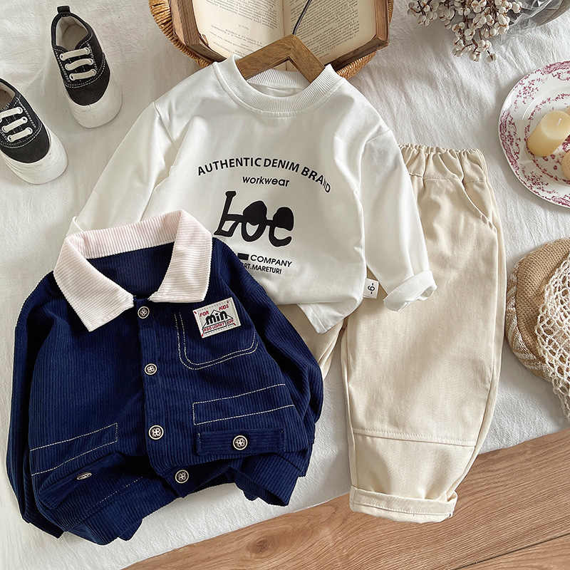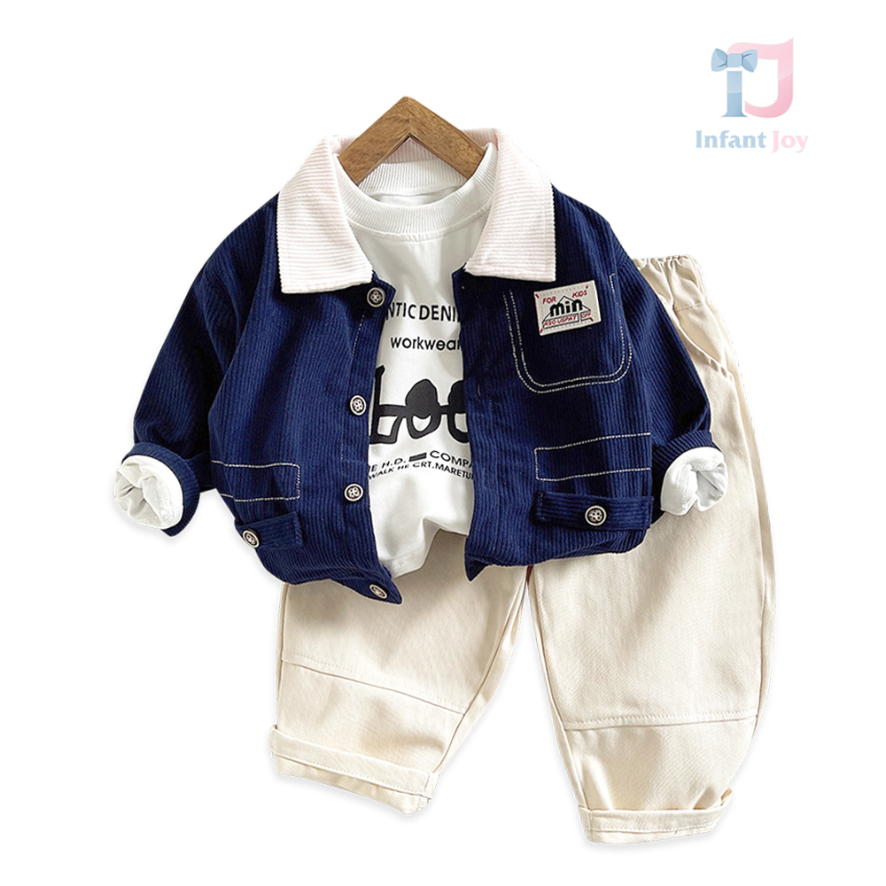 Set de 3 piese cu bomber din denim, bluză cu imprimeuri și pantaloni Mini League Navy