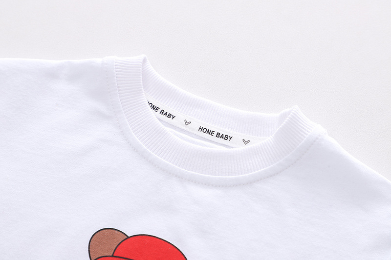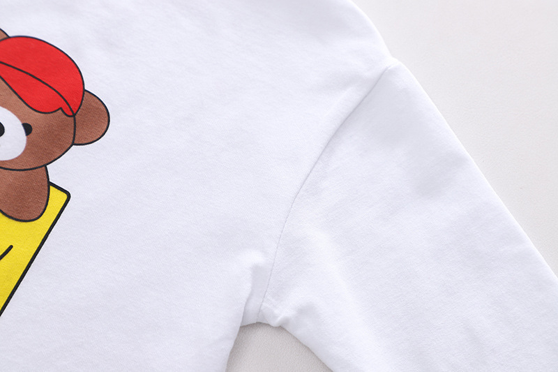-Tricou alb din bumbac de înaltă calitate cu aplicație urs.