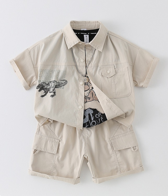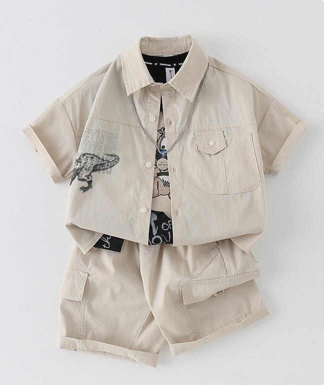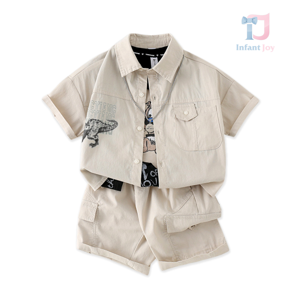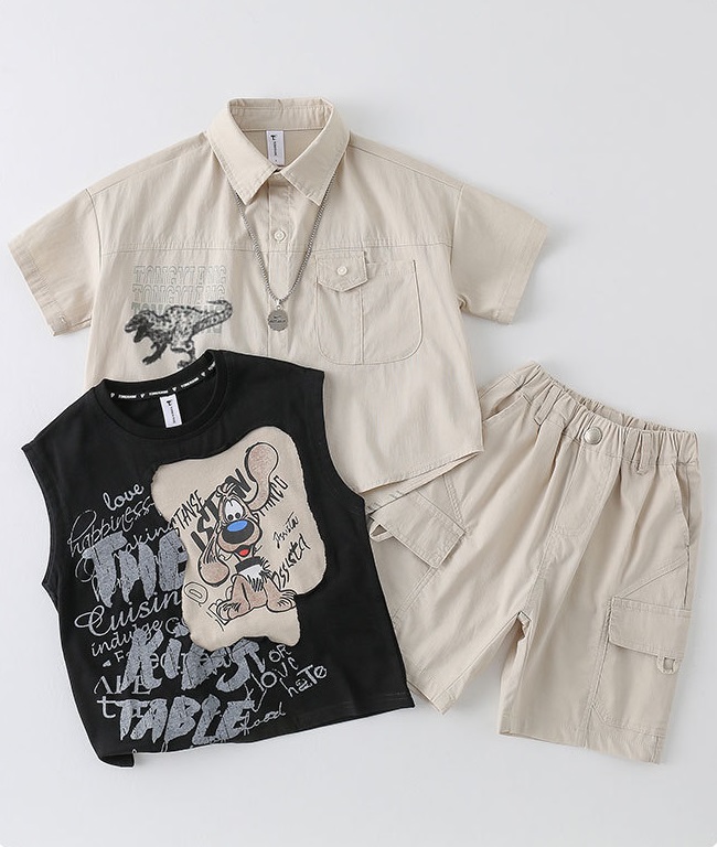 Set de 3 piese cu cămașă cu guler clasic, maiou și pantaloni cargo scurți Raptor