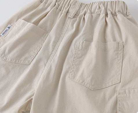 -Pantaloni scurți tip cargo, cu talie elastică și buzunare laterale funcționale. Design practic și modern, oferă libertate de mișcare și spațiu pentru mici comori.