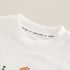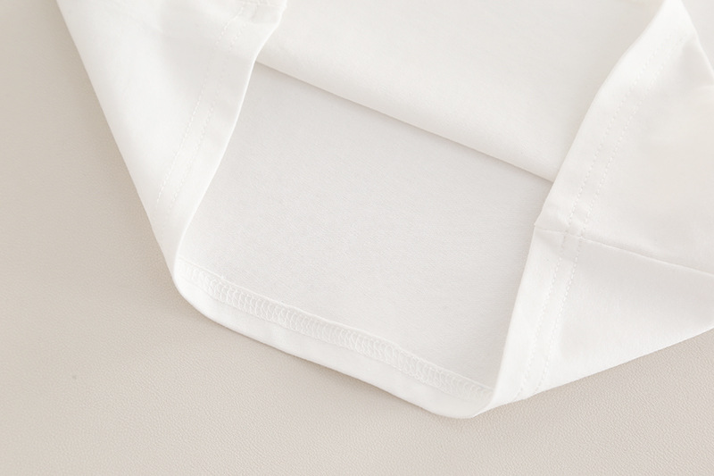 – Bluză albă din bumbac moale, cu decolteu rotund și imprimeu central în tonuri de albastru și portocaliu.