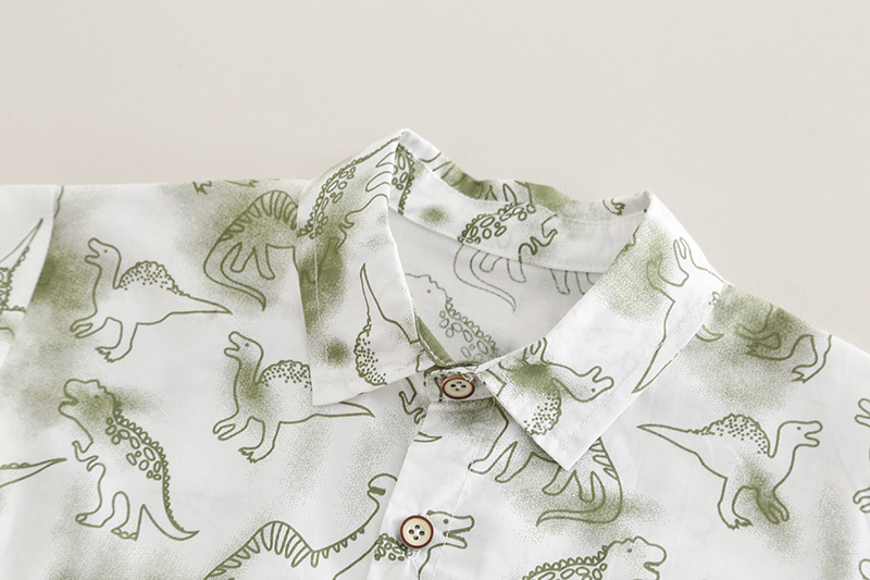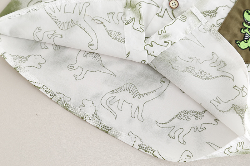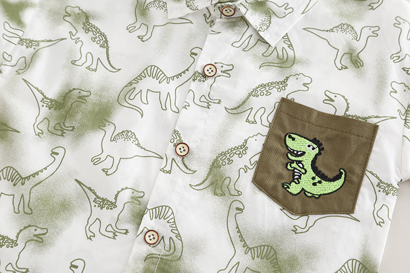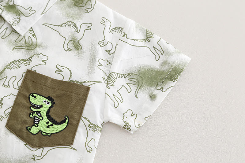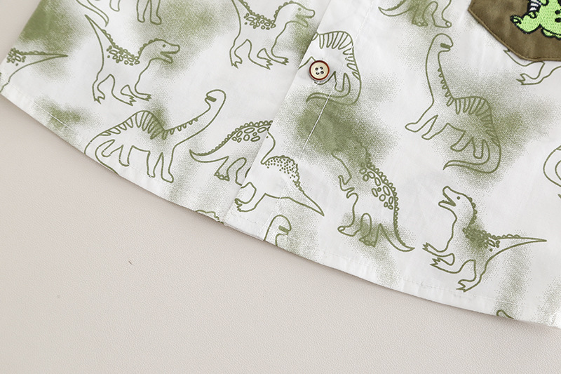 -Cămașă cu mânecă scurtă, din bumbac moale, cu imprimeu cu dinozauri. Model cu guler clasic și închidere completă cu nasturi. Buzunar frontal decorat cu o aplicație cu crocodil – pentru un aspect vesel.