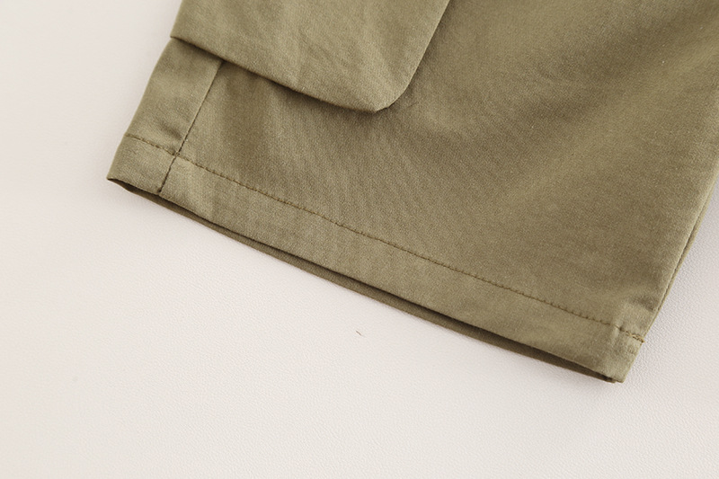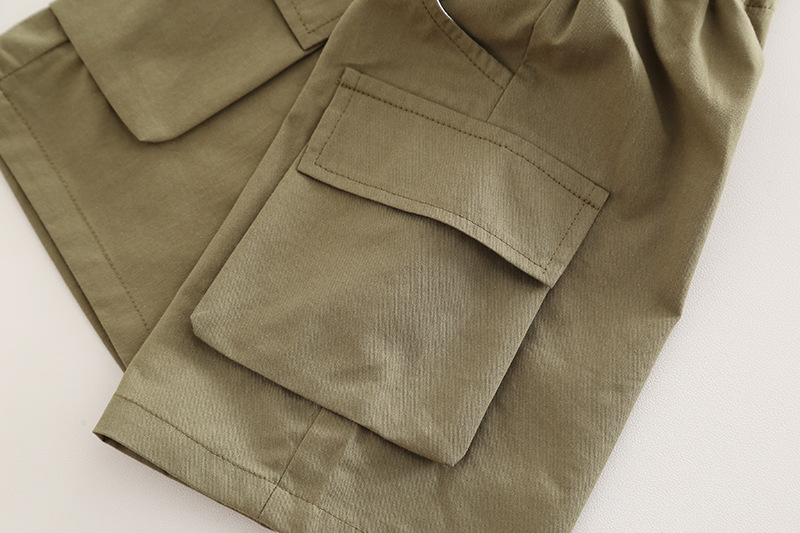 -Pantaloni scurți în culoare verde petrol, cu talie elastică și buzunare tip cargo.