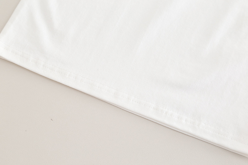 -Tricou alb din bumbac, cu adaos de elasticitate. Elemente imprimate cu texte în partea din față.