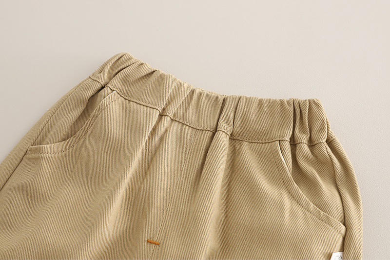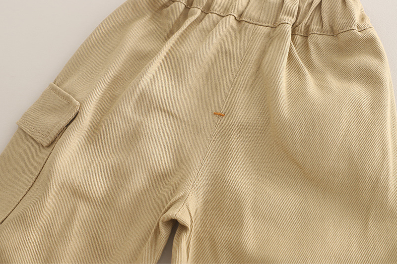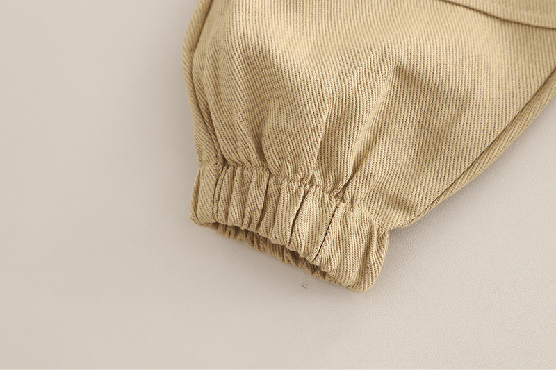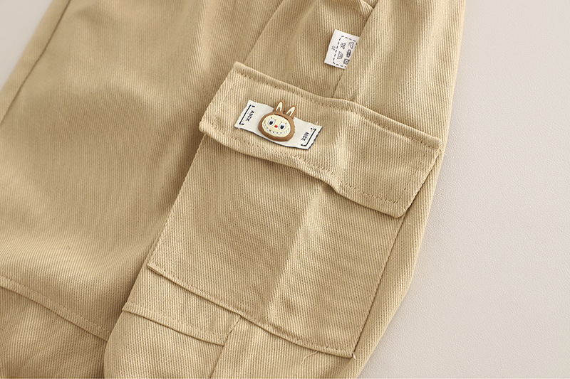 – Pantaloni tip cargo în bej nisipiu, cu talie și manșete elastice, buzunare laterale și emblemă decorativă cu față de animăluț. Materialul este dens, dar moale – potrivit pentru uz zilnic.