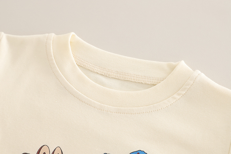 – Tricou alb din bumbac moale, cu imprimeu în același stil ca al cămășii – pentru un look complet și armonios. Croială lejeră și confortabilă, perfectă pentru joacă activă.