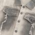 – Cămașă din denim cu efect batik, în trecere de la gri deschis la gri închis. Modelul este decorat cu două buzunare frontale cu clape, dintre care unul are o aplicație. Detaliile deliberate, ușor rupte, oferă un aspect modern, iar nasturii din față permit o închidere ușoară. Mânecuțele îndoite adaugă un accent lejer și stilat.