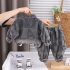 Set de 3 piese cu cămașă din denim cu efect prespălat, bluză și pantaloni Nevermind Black