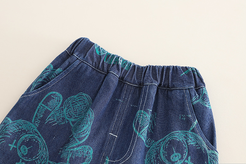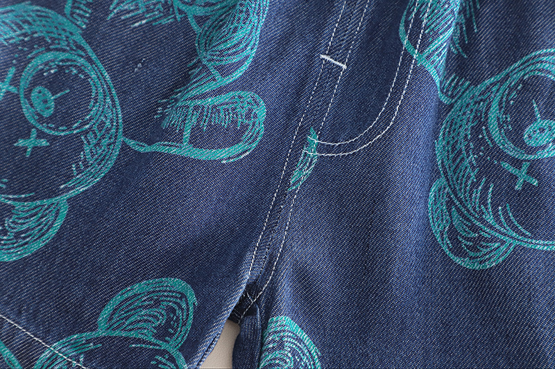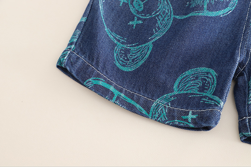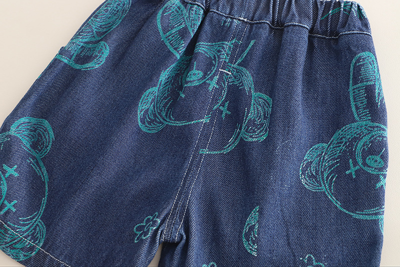 Set de 3 piese cu cămașă din denim cu elemente imprimate, tricou și pantaloni scurți Denim Doodles