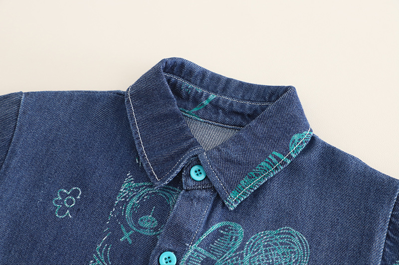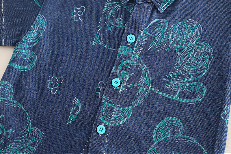 -Cămașă modernă cu mânecă scurtă, confecționată din denim chambray moale. Model cu guler clasic și închidere completă cu nasturi în față. Gulerul adaugă o notă sport-elegantă, iar imprimeul cu ursuleți oferă un aspect drăgălaș.