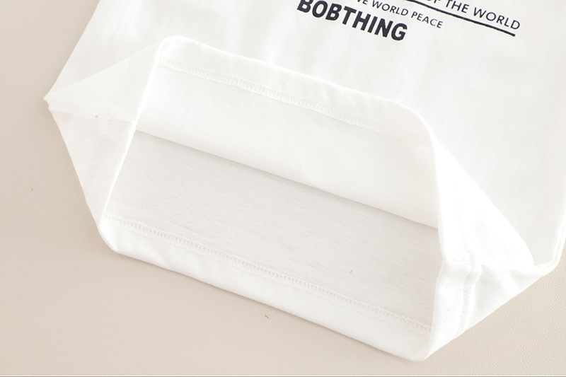 -Maiou alb de bază cu inscripție neagră centrală – simplu și ușor de combinat. Realizat din bumbac moale și elastic, ideal pentru confort pe tot parcursul zilei, chiar și în cele mai active momente.