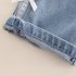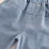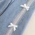 – Pantalon din denim cu croială lejeră, confecționat din denim moale, cu talie elastică confortabilă. Pe lateralul cracilor sunt adăugate mici fundițe albe – un detaliu delicat care completează perfect ținuta. Tivurile sunt îndoite pentru un stil modern și relaxat.