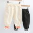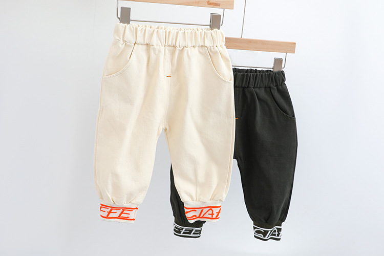 -Pantalon negru din bumbac moale, terminat cu manșete elastice bicolore în partea de jos – confortabil și ideal pentru joacă zilnică.