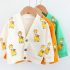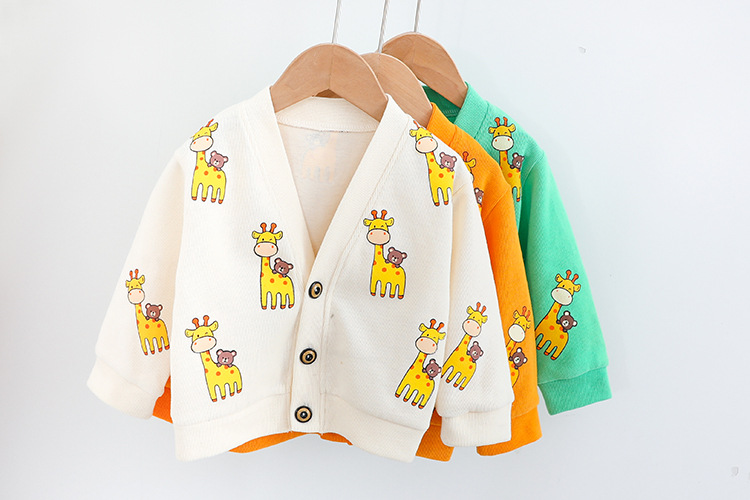 -Cardigan din tricotaj fin, de culoare bej, cu imprimeuri cu girafe și ursuleți. Model cu închidere completă în față, prevăzut cu nasturi.