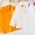 -Bluză portocalie din bumbac, cu guler clasic și aplicație simpatică cu girafă, plus inscripție pentru un plus de farmec.
