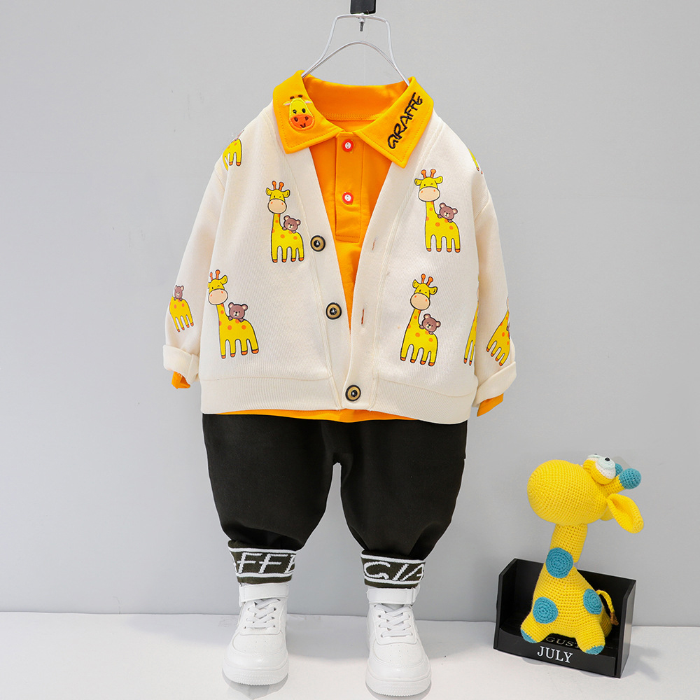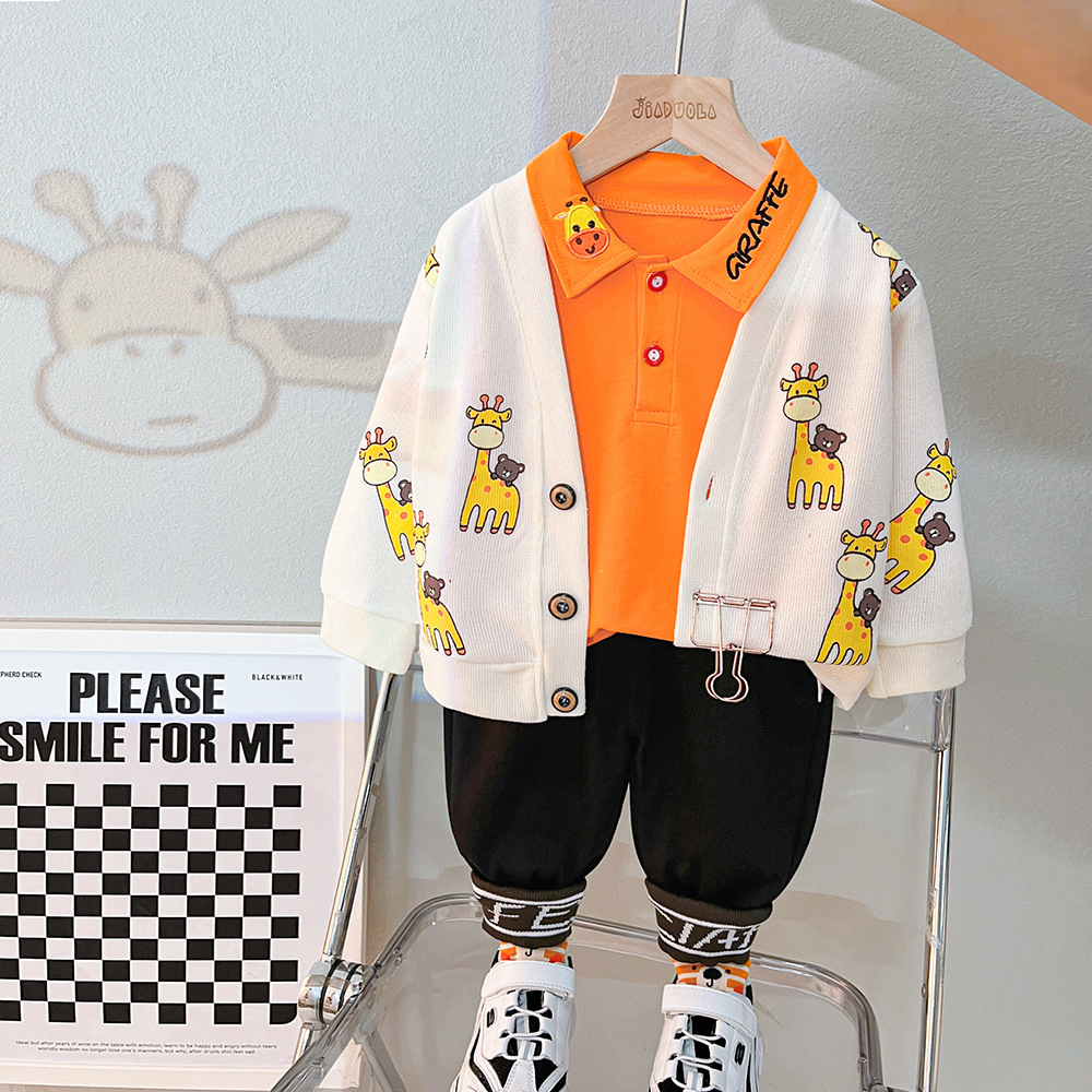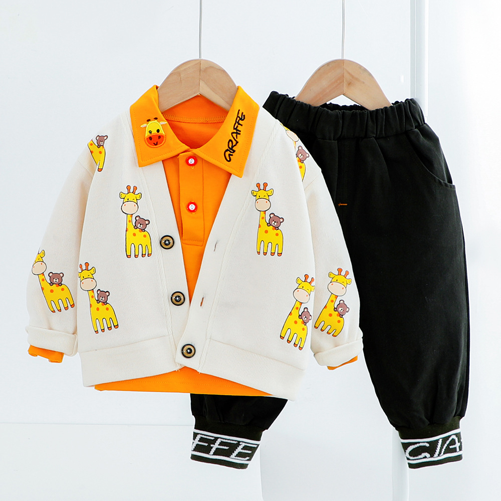 Set de 3 piese cu vestă imprimată, bluză cu guler clasic și pantaloni Orange Giraffe