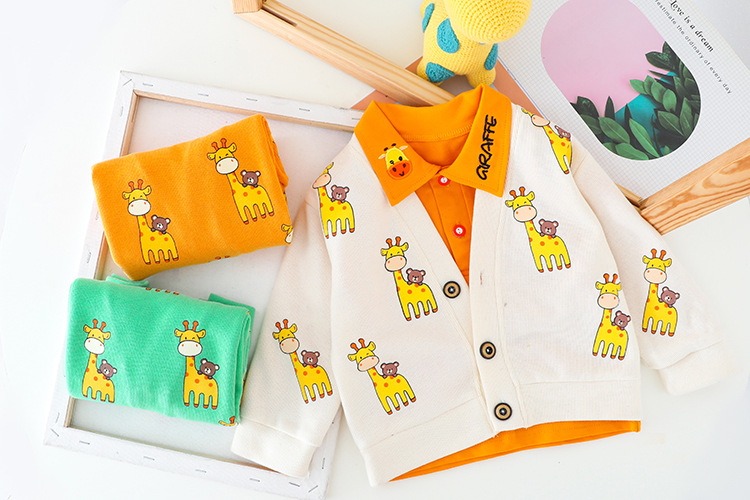 • Set de 3 piese cu cardigan imprimat, bluză cu guler clasic și pantaloni Vanilla Giraffe