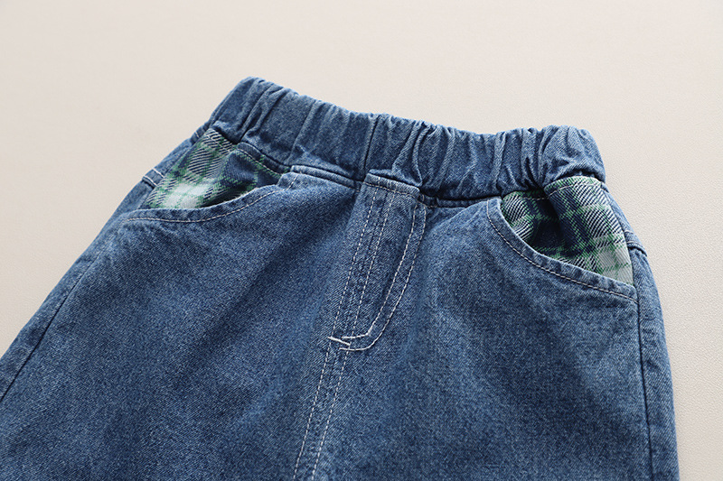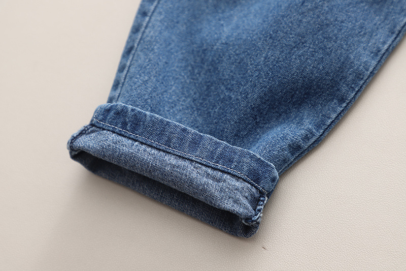 -Pantaloni din denim simpli, cu elastic în talie pentru confort + două buzunare frontale.