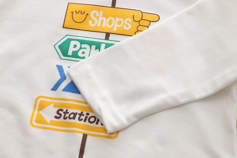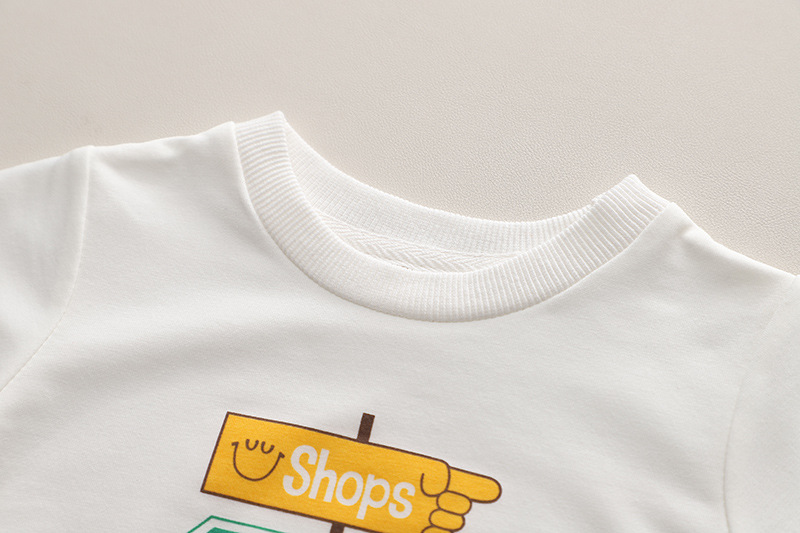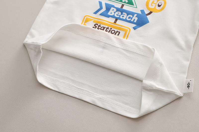 -Bluziță albă din bumbac, ușor elastică pentru confort, cu un imprimeu colorat pe partea din față pentru un aspect adorabil.