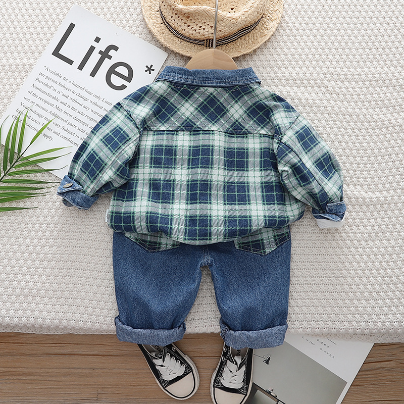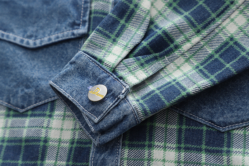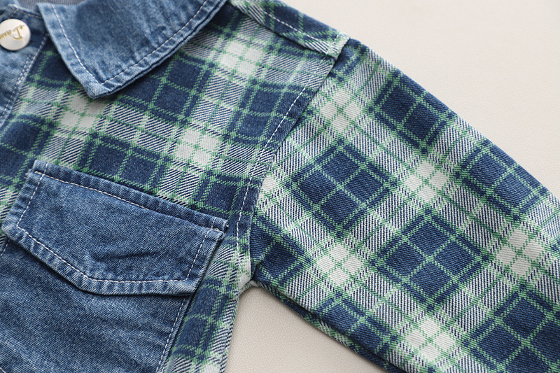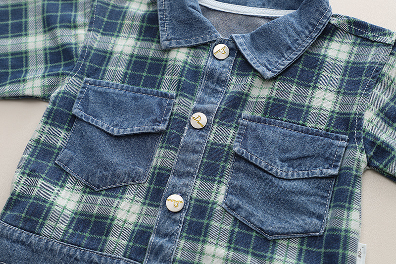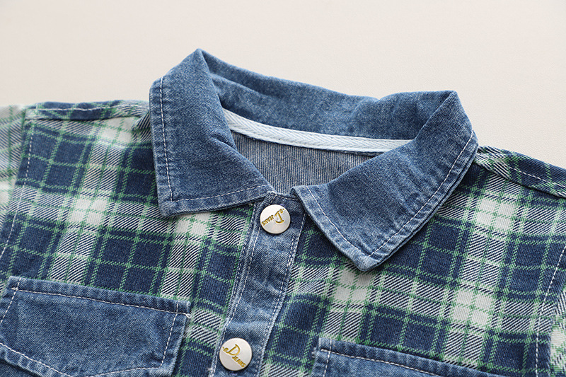 -Jachetă din material de blugi de înaltă calitate, cu un design modern în carouri. Model cu guler autentic, două buzunare frontale și închidere cu nasturi metalici pe toată lungimea.