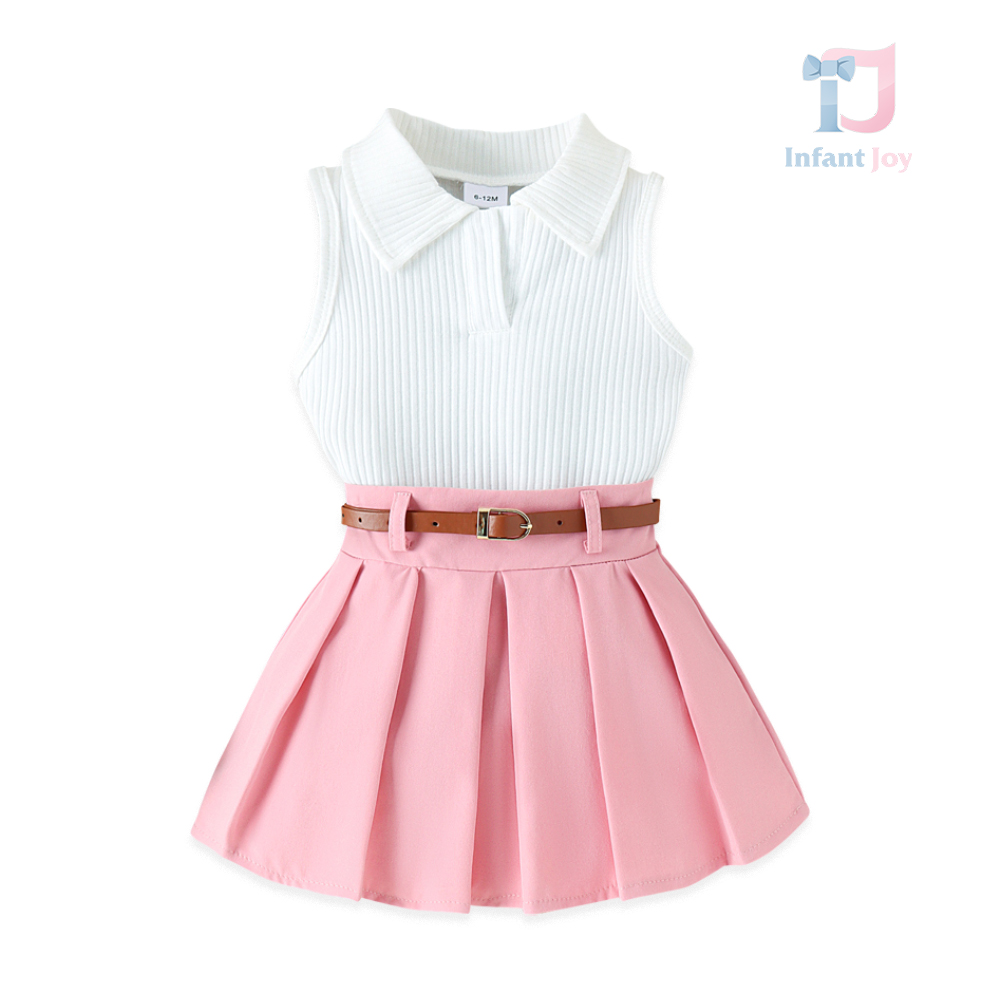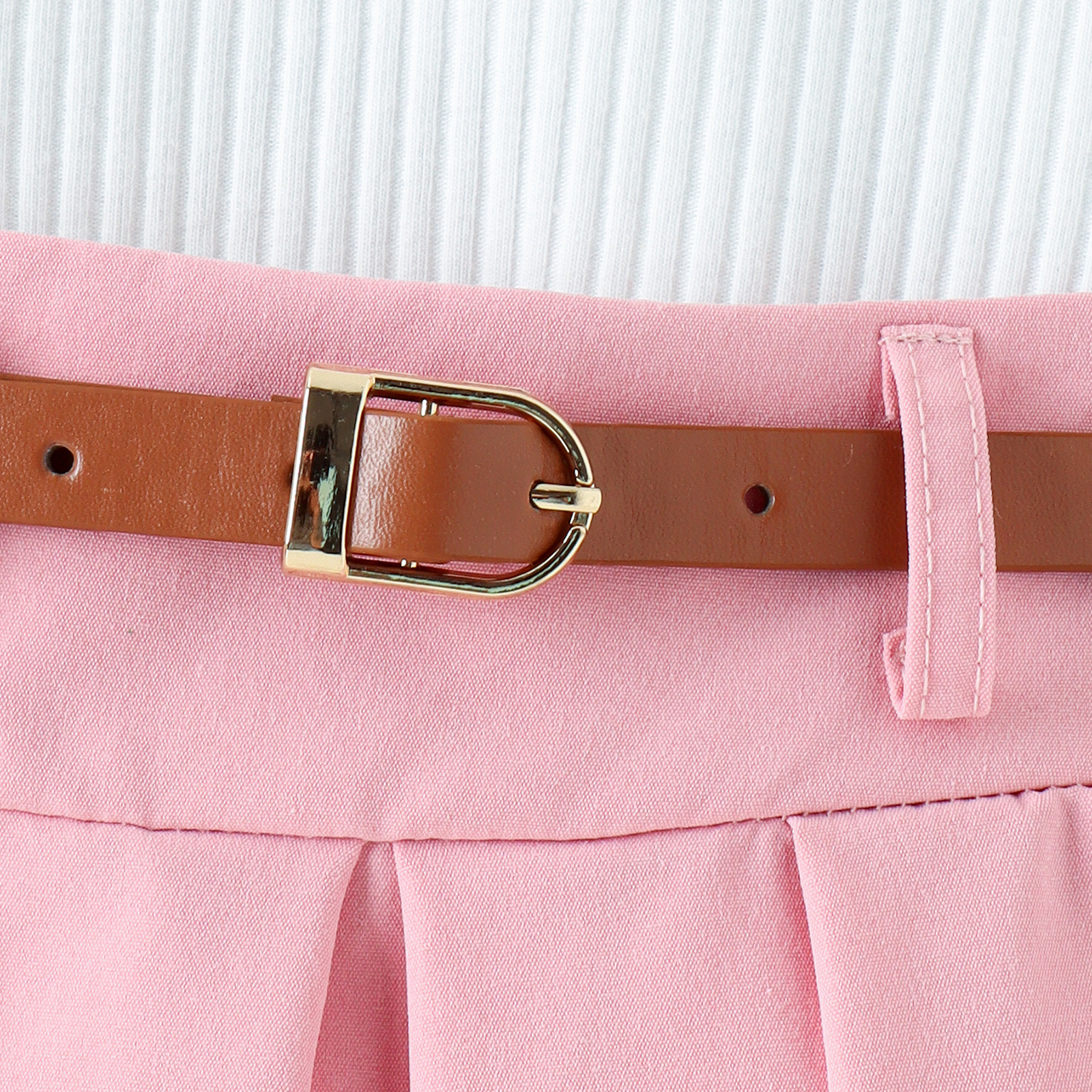 Set de 3 piese cu guler clasic, fustă plisată și curea Rose Petal Twirl