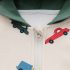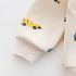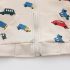– Hanorac confecționat din bumbac moale, pe fundal ecru, acoperit cu imprimeuri colorate cu mașini, camioane și microbuze. Model cu croială dreaptă, fermoar frontal, glugă în culoare verde contrastantă și buzunare comode – îmbină stilul cu funcționalitatea.