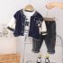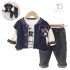 Set de 3 piese cu jachetă bomber cu imprimeuri în relief, bluziță și pantaloni din denim Let`s Play Basketball Navy
