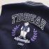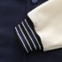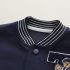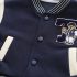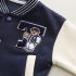 -Bomber confecționat din material de înaltă calitate tip „lacoste“, într-o combinație de culori bej și albastru închis. Închidere completă în față cu capse. Manșetele elastice tricolore și aplicația 3D din pluș adaugă un stil modern.