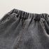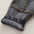 -Pantaloni din denim închis, cu o croială clasică, două buzunare frontale, talie elastică și cusături asimetrice în partea de jos pentru un detaliu distinctiv.