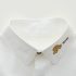 – Cămașă cu guler clasic, realizată din material de bumbac de culoare albă. Modelul are închidere frontală cu nasturi și o mică aplicație decorativă pe guler, care completează lookul cu un accent fin și drăguț.