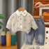 Set de 3 piese cu jachetă din denim, cămașă cu guler clasic și pantaloni din denim Kiddo Driver Beige