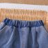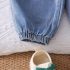 – Pantaloni din același denim, cu talie elastică largă și manșete la gleznă; designul include cusături decorative pronunțate la genunchi și două buzunare – un finisaj stilat și practic.