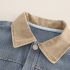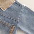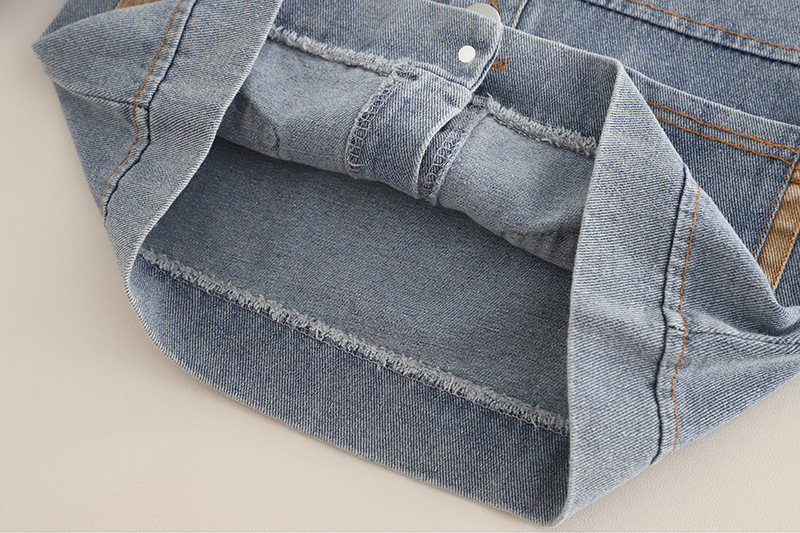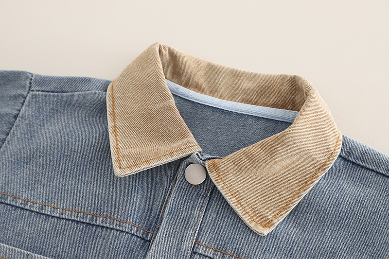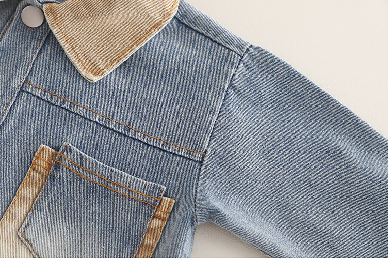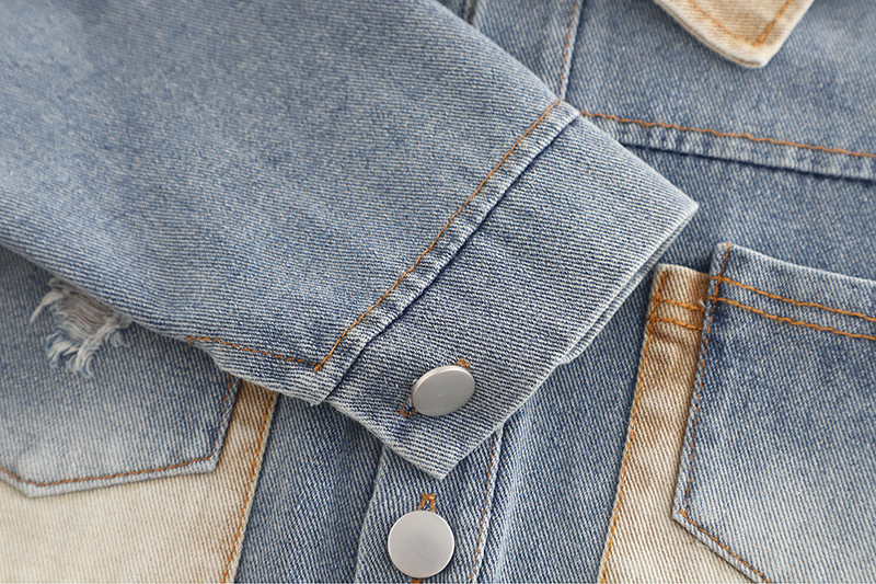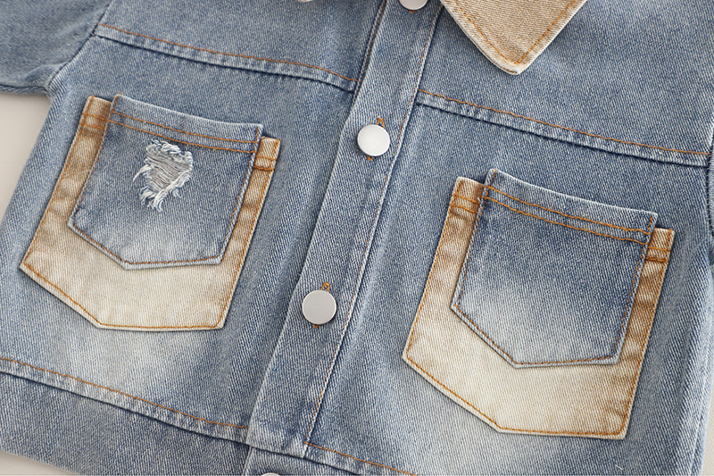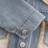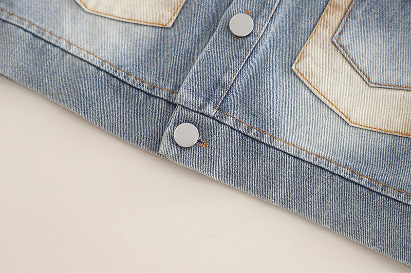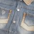 – Jachetă din denim decolorat, cu detalii contrastante bej la guler, buzunare și tiv. Buzunarele exterioare decorative au un efect de uzură – specific stilului urban. Materialul moale și mânecile suflecate oferă confort și libertate de mișcare. Se închide cu capse.