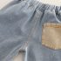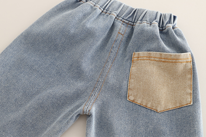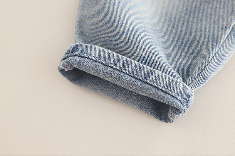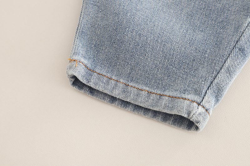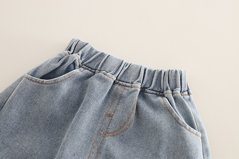 – Pantaloni din același denim decolorat, cu talie elastică. Croială lejeră, cu două buzunare laterale și efect de decolorare ușoară pe cusături – pentru un look relaxat și fresh.