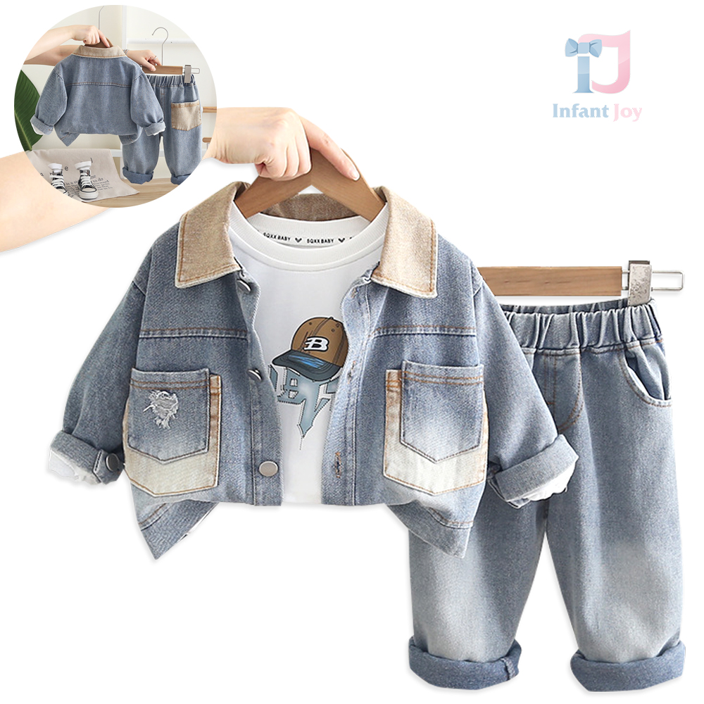 🧢 Set modern din denim, format din 3 piese, pentru băieței.