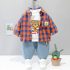 Set de 3 piese cu pantaloni din denim și cămașă în carouri Race Pilot Orange