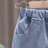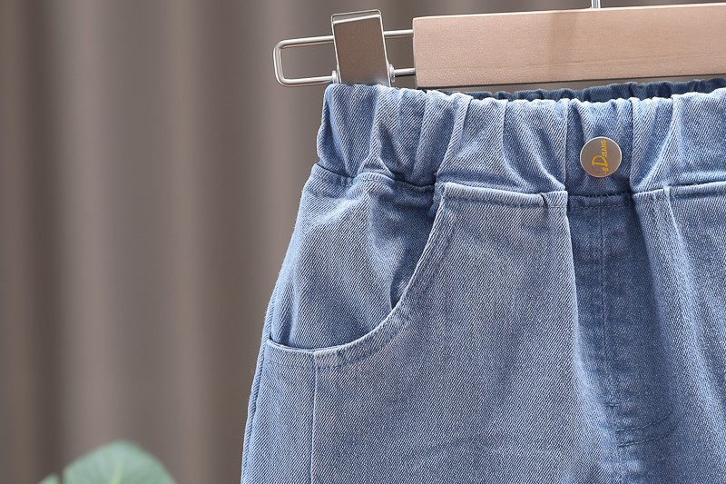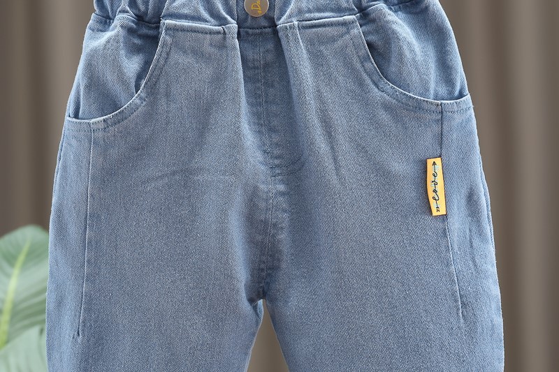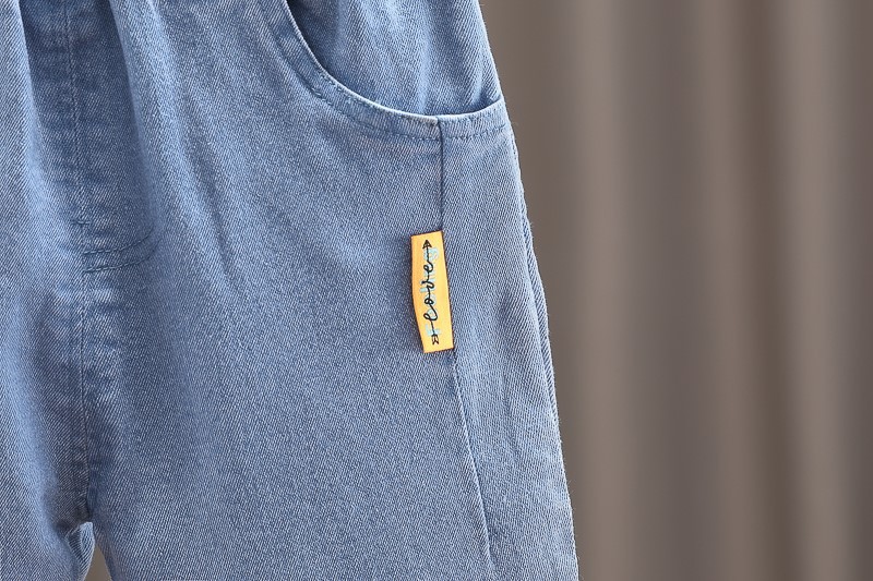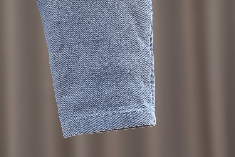 -Pantalon din denim moale, croială „Chino”, cu talie elastică și nasture decorativ + două buzunare.