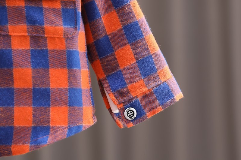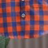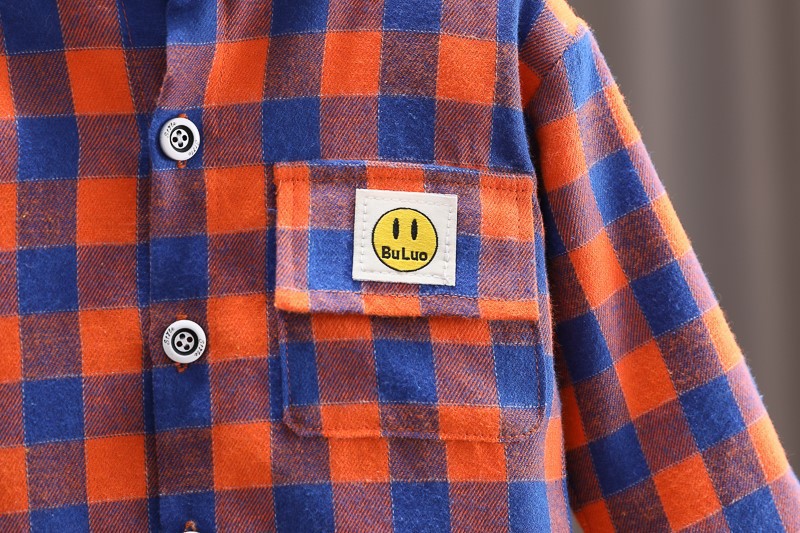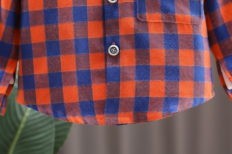 -Cămașă din bumbac de înaltă calitate, realizată în carouri portocalii și albastre. Model cu guler clasic, închidere completă cu nasturi și buzunar aplicat cu emblemă, pentru un aspect drăguț.