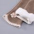 – Bluziță din tricot reiat cu mânecă lungă, într-o nuanță deschisă și neutră, confecționată din material moale. Modelul are un design simplu și decolteu rotund, potrivit pentru a fi purtat ca strat de bază sub jachetă și pentru a oferi căldură suplimentară. Este decorat cu volănașe din dantelă + fundiță în partea din față.