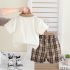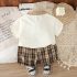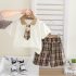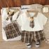 • Set de 3 piese cu tricou cu broșă ursuleț cu fundiță și fustă plisată în carouri Miss Teddy Scholar