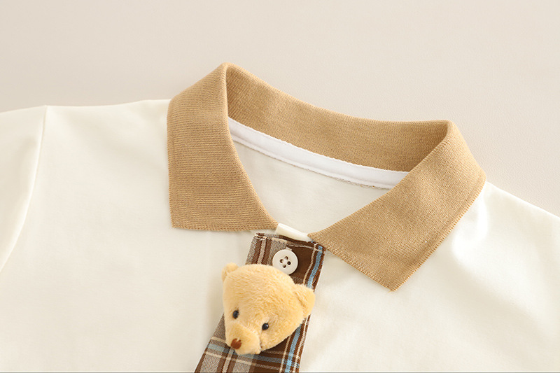 • Set de 3 piese cu tricou, cravată cu ursuleț și pantaloni scurți în carouri Mr. Teddy Scholar