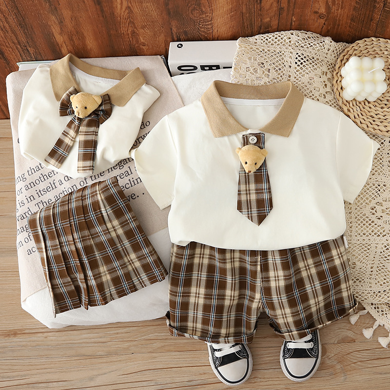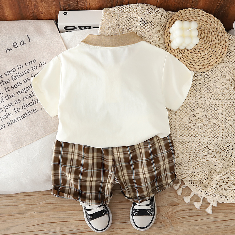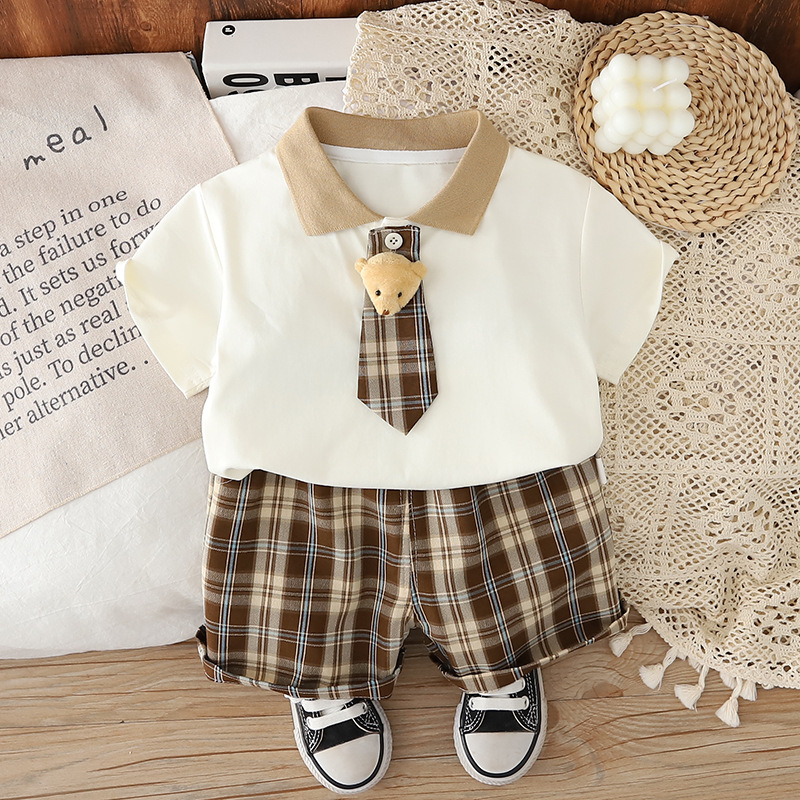 Set de 3 piese cu tricou, cravată cu ursuleț și pantaloni scurți în carouri Mr. Teddy Scholar